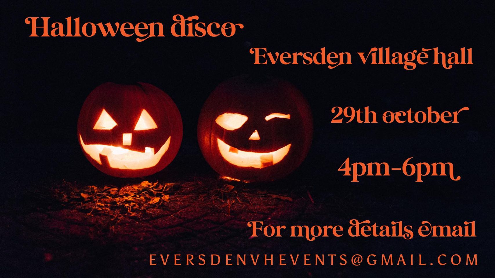 Kids Halloween disco! Email: eversdenvhevents@gmail.com for details